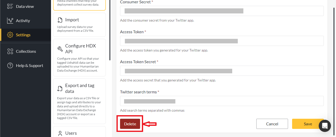 ### Configure Twitter in the Ushahidi Platform