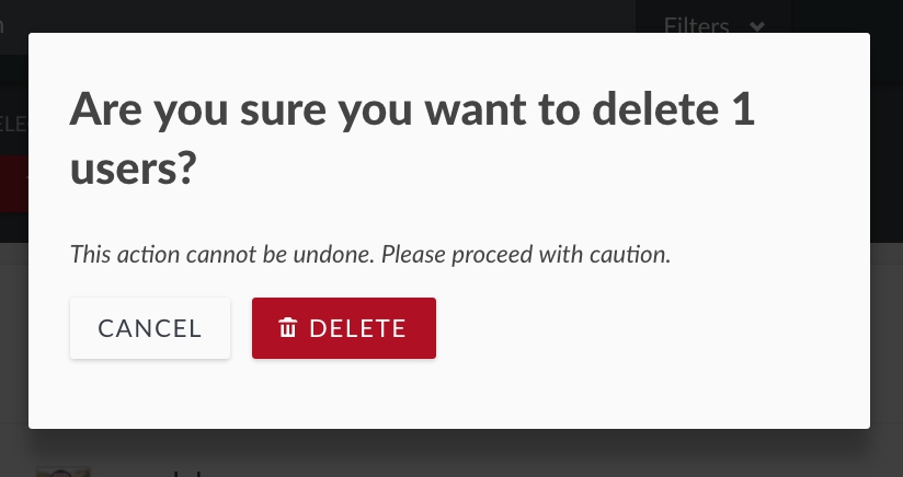 A pop up box will appear, prompting you to confirm whether you would like to delete your user(s)