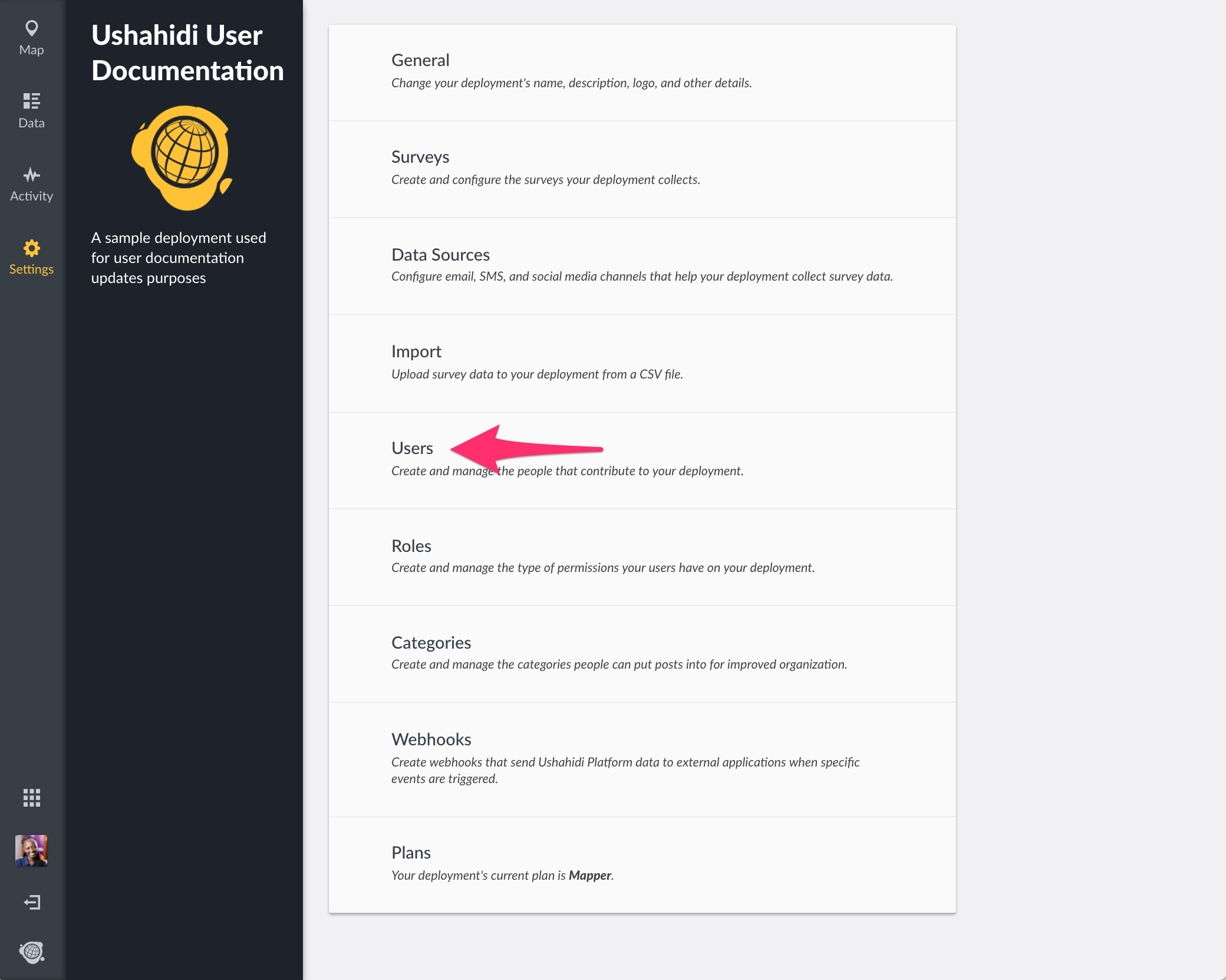 You’ll be redirected to a page with a list of all existing users on your deployment