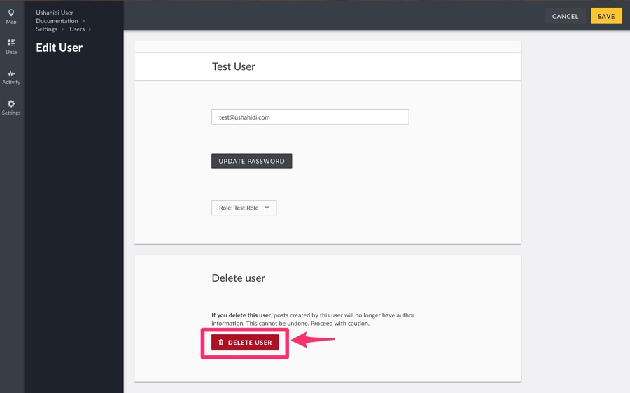 Click on Delete User.