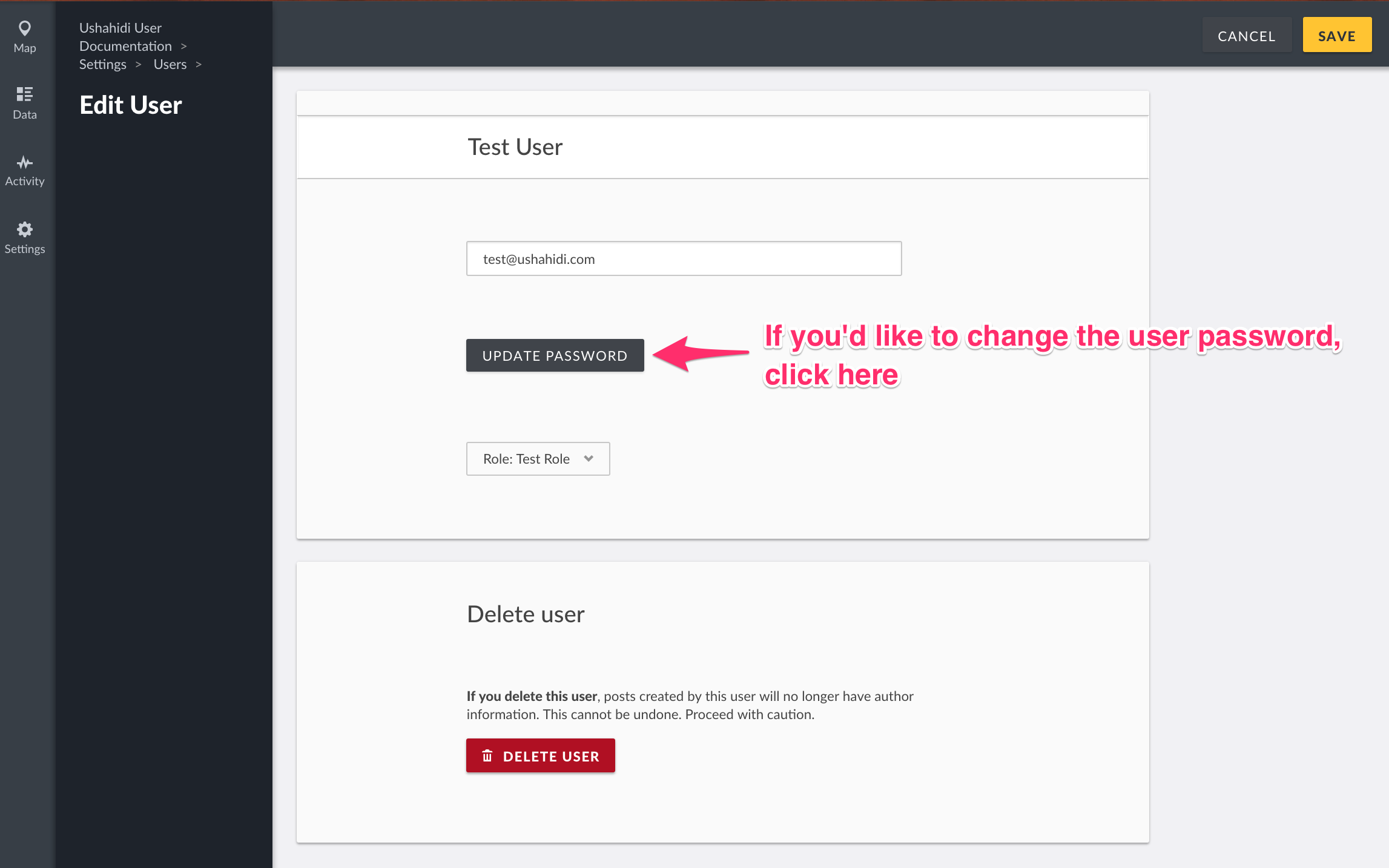 If you’d like to cancel the user deletion process, click on Cancel.