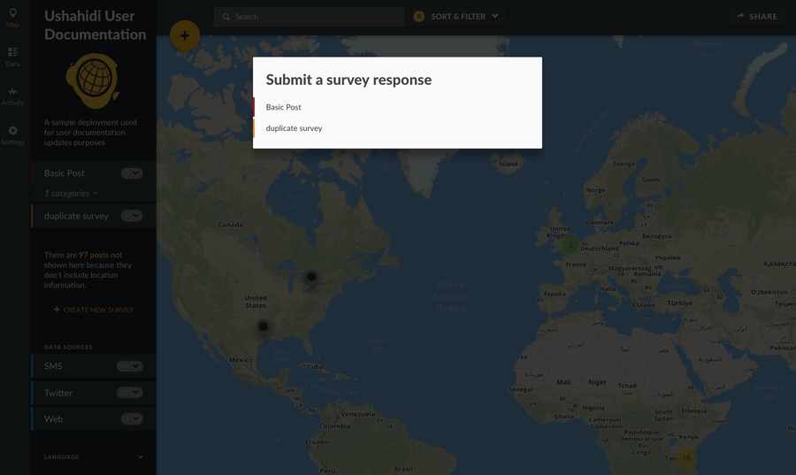 If SMS has been configured and enabled as a data source on your deployment, users will be able to send in text messages directly to a configured short code or sms number of your choice, which will be pulled in to your data view and available via the search filter. See chapter 3.4 for more configuration details