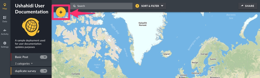 Click on the yellow add icon as shown below on your homepage, or on the bottom left corner on the data mode page