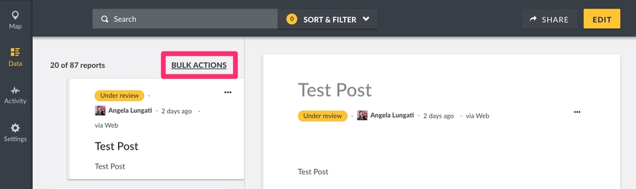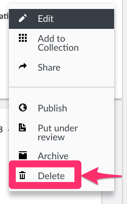 An individual post from the data view, click on the three dotted icon from the list of detail pane as shown below, then click on Delete