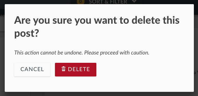 If you’d like to cancel the post deletion process, click on Cancel