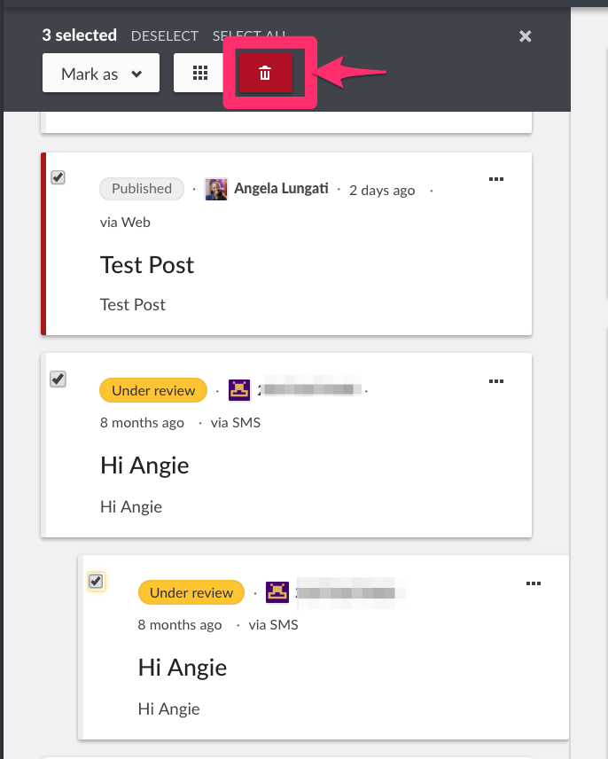 Click on Delete to delete your post(s)