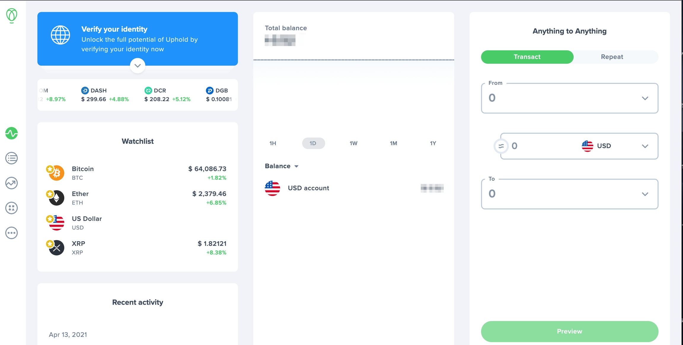 Log into your uphold account. You will be redirected to your dashboard https://wallet.uphold.com/dashboard